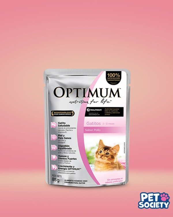 Desarrollado siguiendo las recomendaciones de WALTHAM ™, la principal autoridad mundial en nutrición, cuidado y bienestar animal, OPTIMUM ™ es un producto elaborado con materias primas de muy alta calidad: pollo, fibras naturales, y sin la adición de conservantes, colorantes o sabores artificiales.
