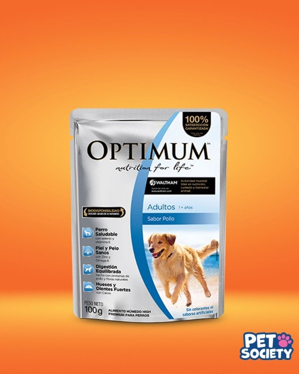 El Pouch Optimum Perro Mediano y Grande, cuenta con proteína refinada de pollo cocido al vapor y fibras naturales para una digestión equilibrada. Mejora el tránsito intestinal y la absorción de nutrientes: las heces son más firmes, fáciles de limpiar y de menor cantidad.