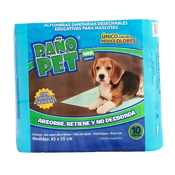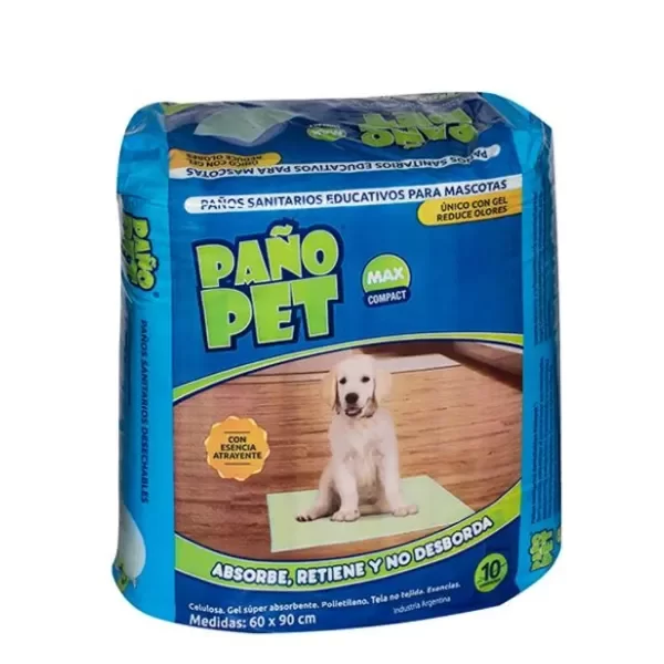 Los Paños Sanitarios Los Pañopet Max Compact, son alfombras desechables para perros, que cuentan con esencias atrayentes, son ideales para educar a tu mascota. Están compuestas de celulosa y con un gel que reduce los olores para mantener la higiene de tu casa. Absorben perfectamente, retienen y no se desbordan.