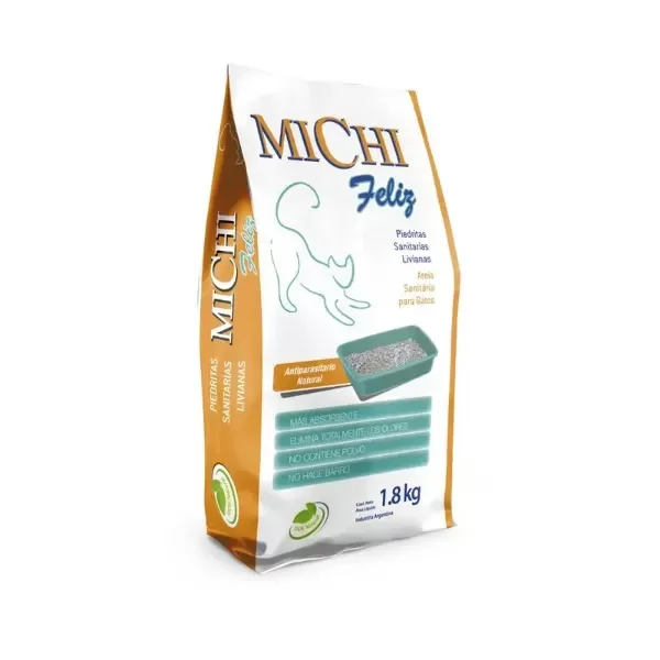 Las piedras Sanitarias Michi Feliz contienen fórmula más absorbente y capaz de eliminar de manera total los malos olores. No produce barro y no contiene polvo.